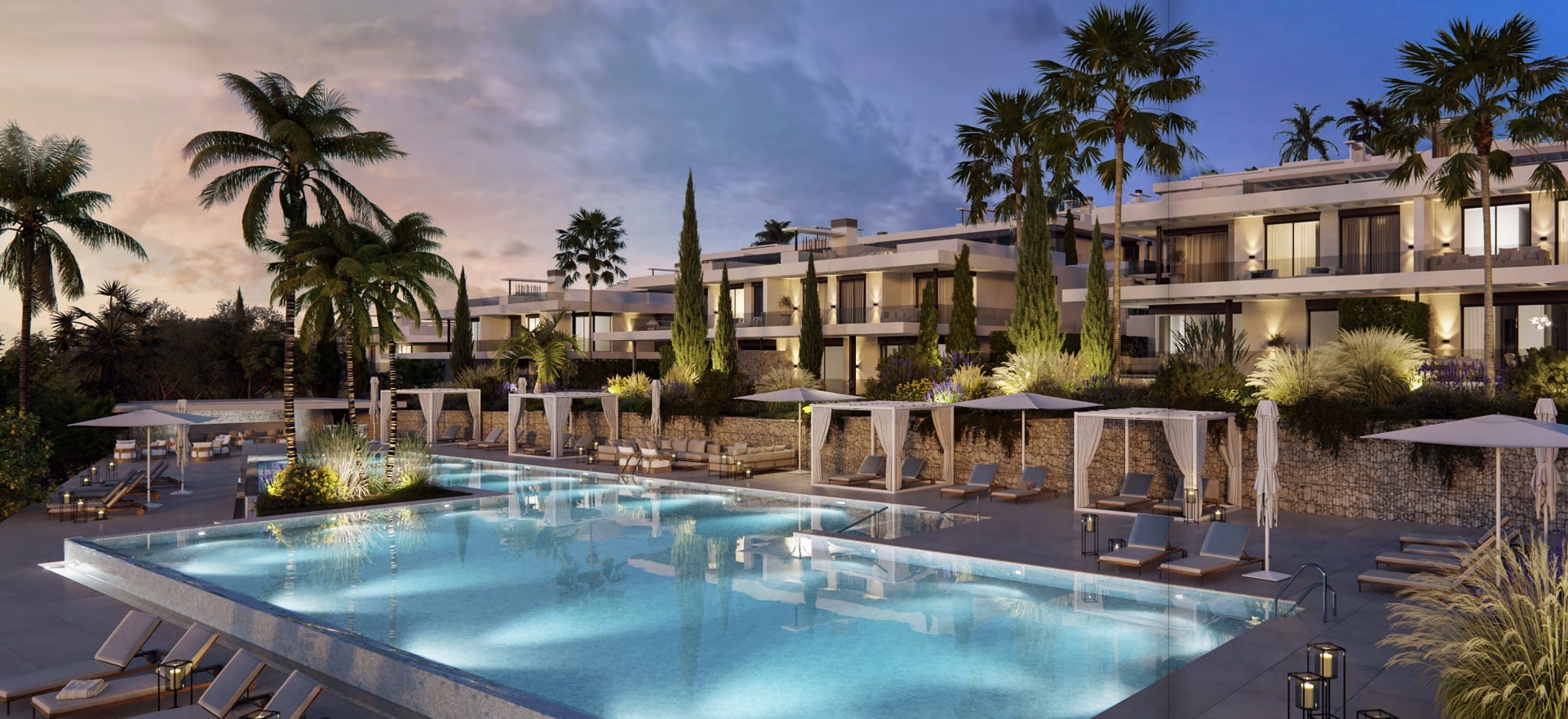 Een eigentijds nieuwbouwproject in Marbella dat stijlvol modern design combineert met comfort en functionaliteit. De architectuur is fris en licht, met ruime terrassen en open woonruimtes die het binnen- en buitenleven moeiteloos verbinden.